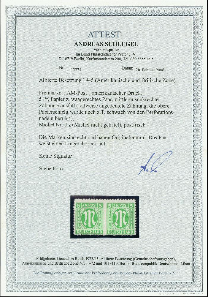 | Prüfer: | Schlegel, Andreas (BPP (Bund Philatelistischer Prüfer)) |