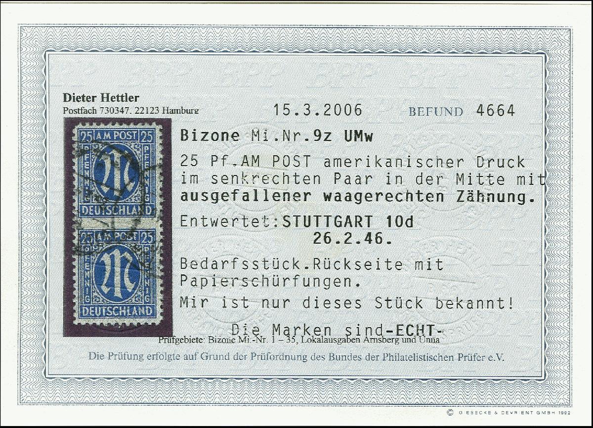 | Prüfer: | Hettler, Dieter (BPP (Bund Philatelistischer Prüfer)) |