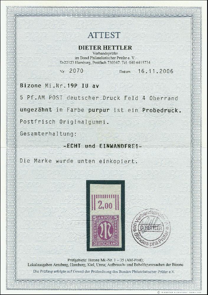 | Prüfer: | Hettler, Dieter (BPP (Bund Philatelistischer Prüfer)) |