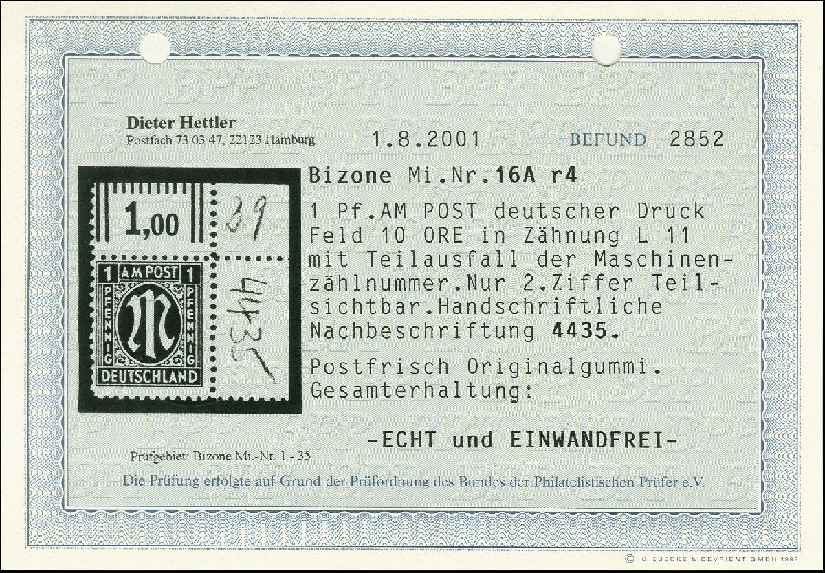 | Prüfgebiet: | Alliierte Besetzung Bizone |
