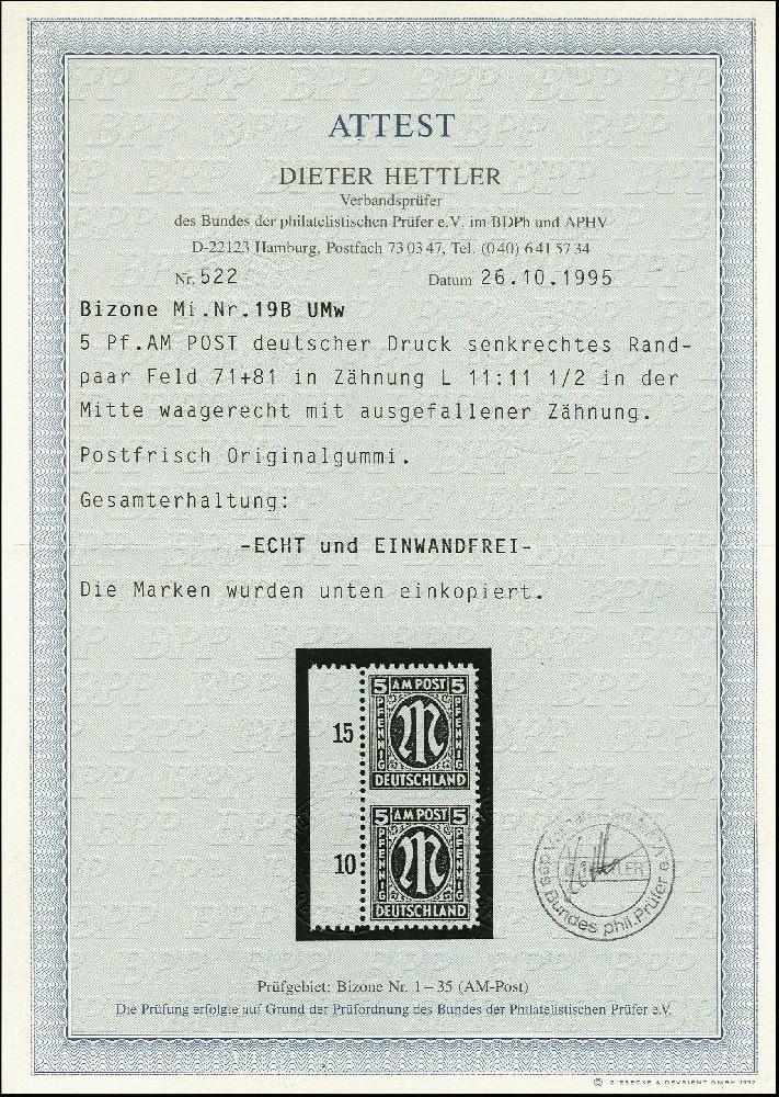 | Prüfgebiet: | Alliierte Besetzung Bizone |
