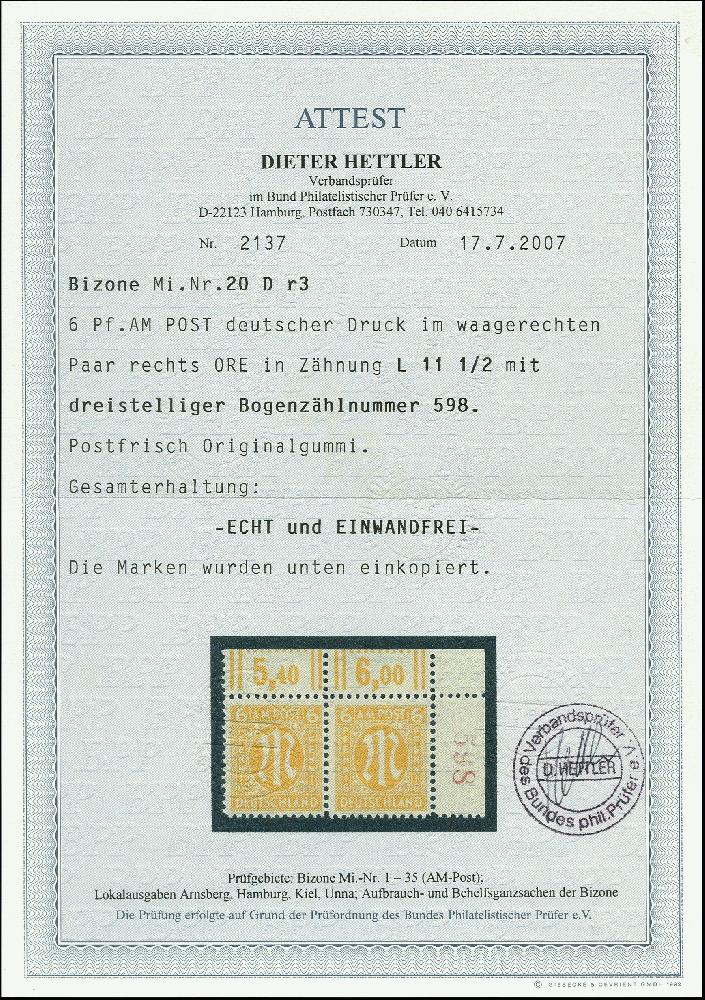 | Prüfgebiet: | Alliierte Besetzung Bizone |