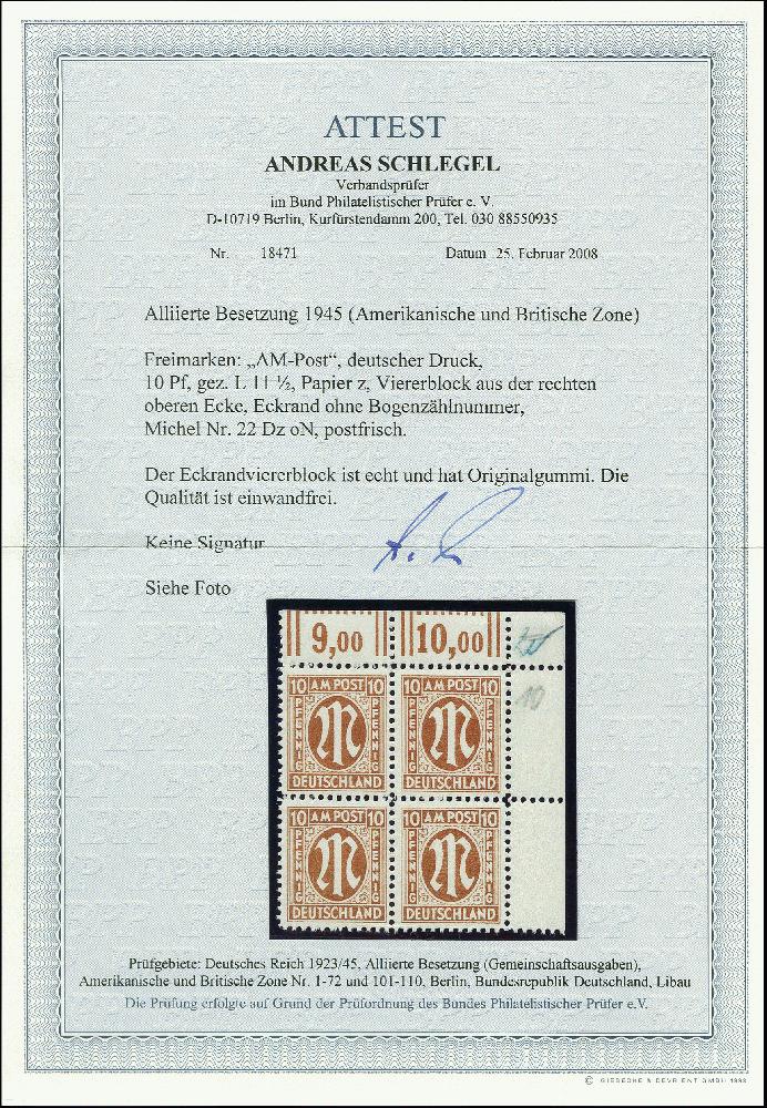 | Prüfer: | Schlegel, Andreas (BPP (Bund Philatelistischer Prüfer)) |