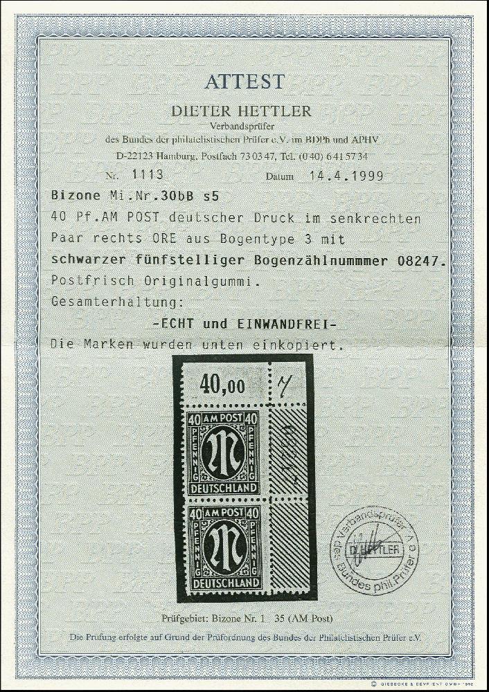 | Prüfer: | Hettler, Dieter (BPP (Bund Philatelistischer Prüfer)) |