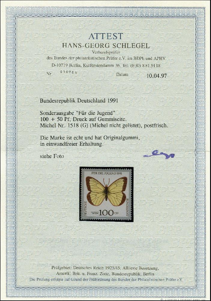 | Prüfer: | Schlegel, Hans-Georg (BPP (Bund Philatelistischer Prüfer)) |