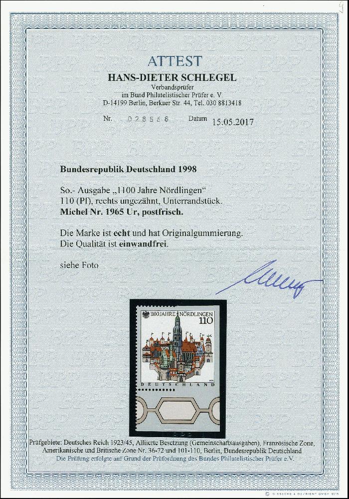 | Prüfer: | Schlegel, Hans-Dieter (BPP (Bund Philatelistischer Prüfer)) |