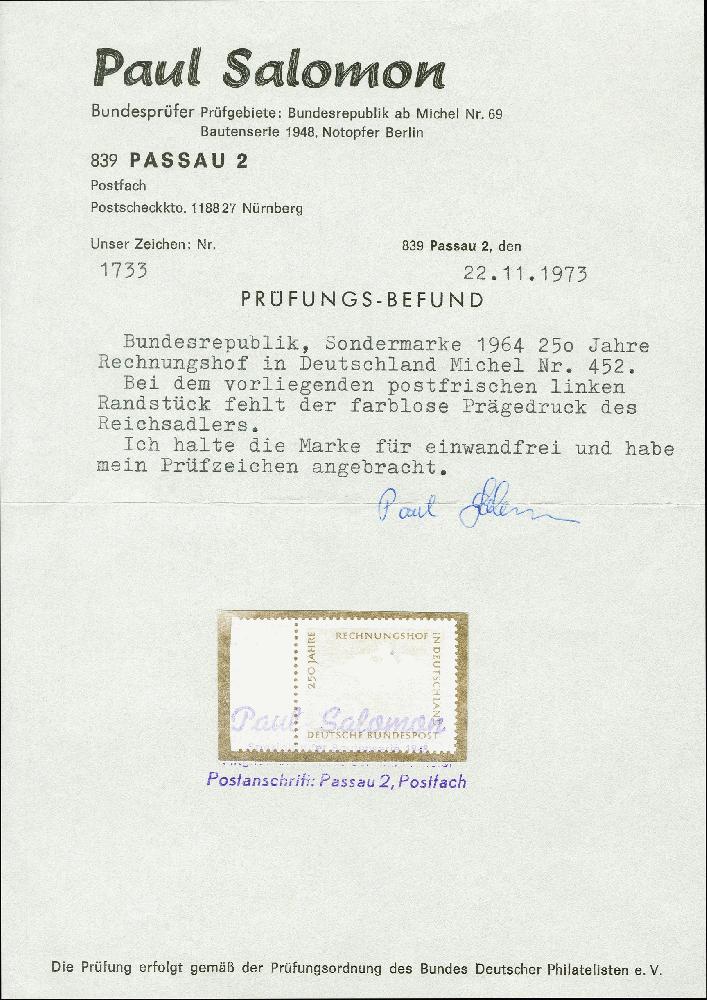 | Prüfer: | Salomon, Paul (BPP (Bund Philatelistischer Prüfer)) |