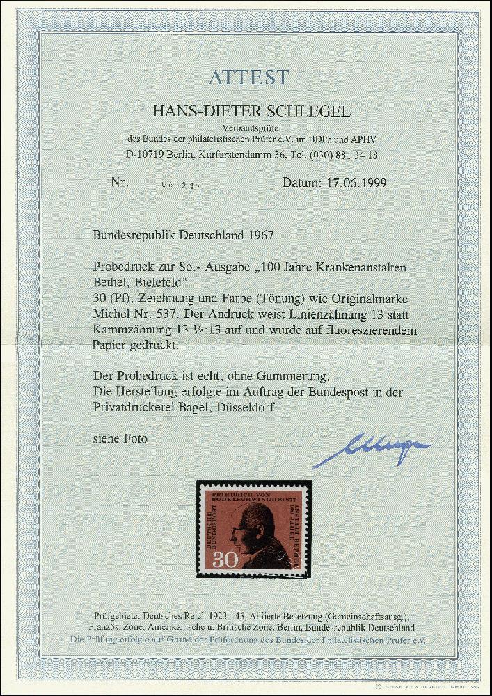 | Prüfer: | Schlegel, Hans-Dieter (BPP (Bund Philatelistischer Prüfer)) |