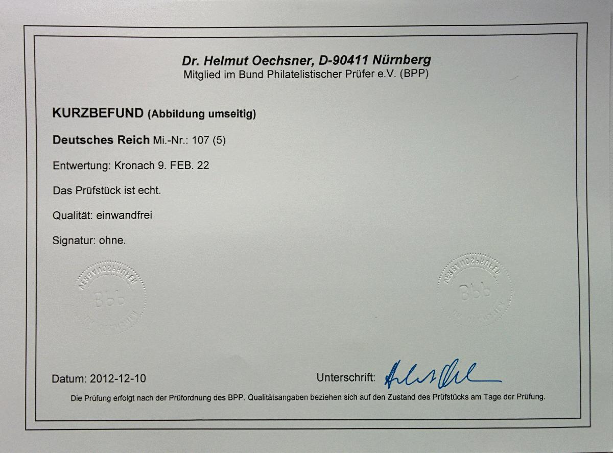 | Prüfgebiet: | Deutsches Reich 1919 - 1923 (Mi-Nr. 107 - 343) |