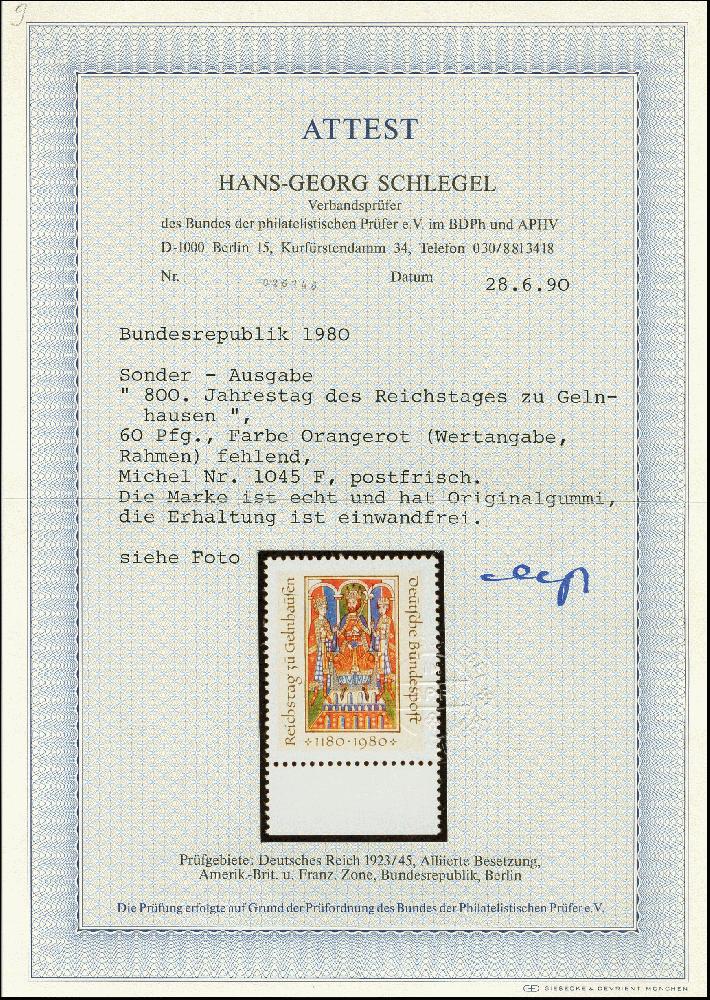 | Prüfer: | Schlegel, Hans-Georg (BPP (Bund Philatelistischer Prüfer)) |