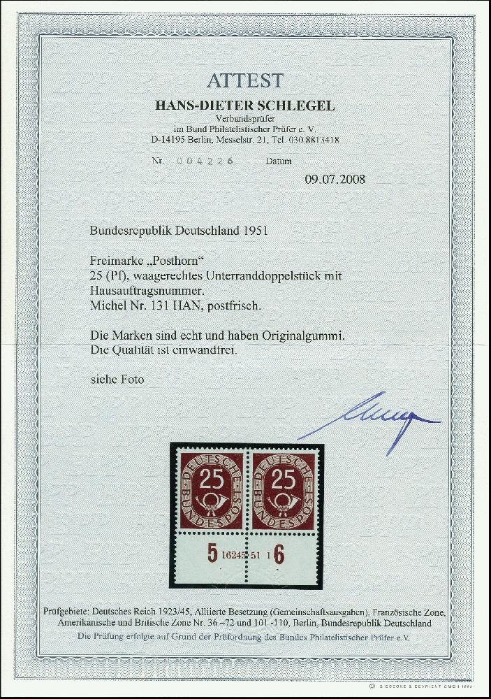 | Prüfer: | Schlegel, Hans-Dieter (BPP (Bund Philatelistischer Prüfer)) |