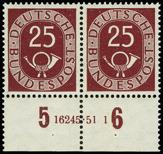 | Zusatzinformationen und Suchstichworte: | 367. Auktion Heinrich Köhler 25. - 29. September 2018 Los 2380 25 Pfg. im waagerechten Unterrandpaar mit HAN "16245.51 1", postfrisch, tadellos, Fotoattest D. Schlegel BPP (2008) (Mi. 650,-) Zuschlag 220,00 EUR |