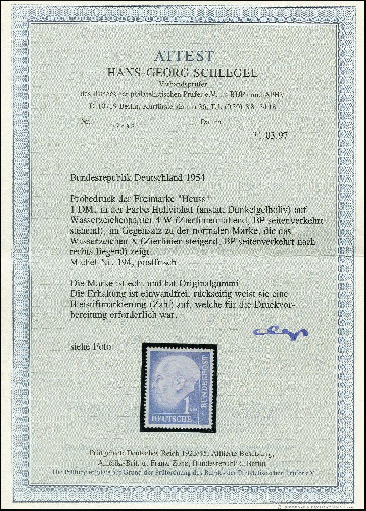 | Prüfer: | Schlegel, Hans-Georg (BPP (Bund Philatelistischer Prüfer)) |