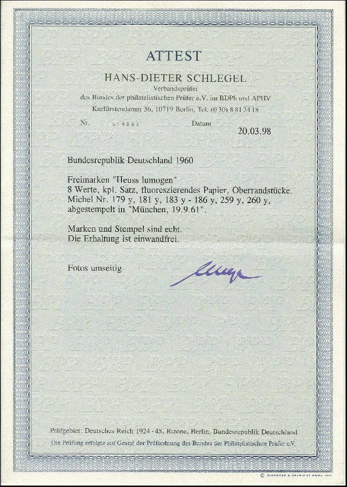 | Prüfer: | Schlegel, Hans-Dieter (BPP (Bund Philatelistischer Prüfer)) |