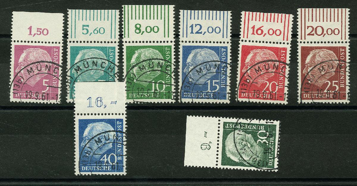 | Zusatzinformationen und Suchstichworte: | 367. Auktion Heinrich Köhler 25. - 29. September 2018 Los 2402 Heuss lumogen 5-40 Pfg. je mit Oberrand kpl., einheitlich gestempelt "MÜNCHEN 19.9.61", tadellos, selten, Fotoattest D. Schlegel BPP (1998) Ausruf 200,00 EUR |