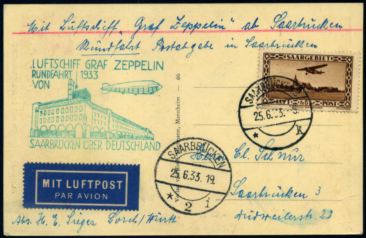 | Zusatzinformationen und Suchstichworte: | 74. AAK Phila GmbH Liquidationsauktion Auktionstermin: 17. Juli 2022 Los 3879 (D) Saar 1933 Saargebietsfahrt Rundfahrt, AK m. Spitzen-EF 5 Fr Flugpost m. einwandfreiem FA Ney BPP Ausruf 100,00 EUR |