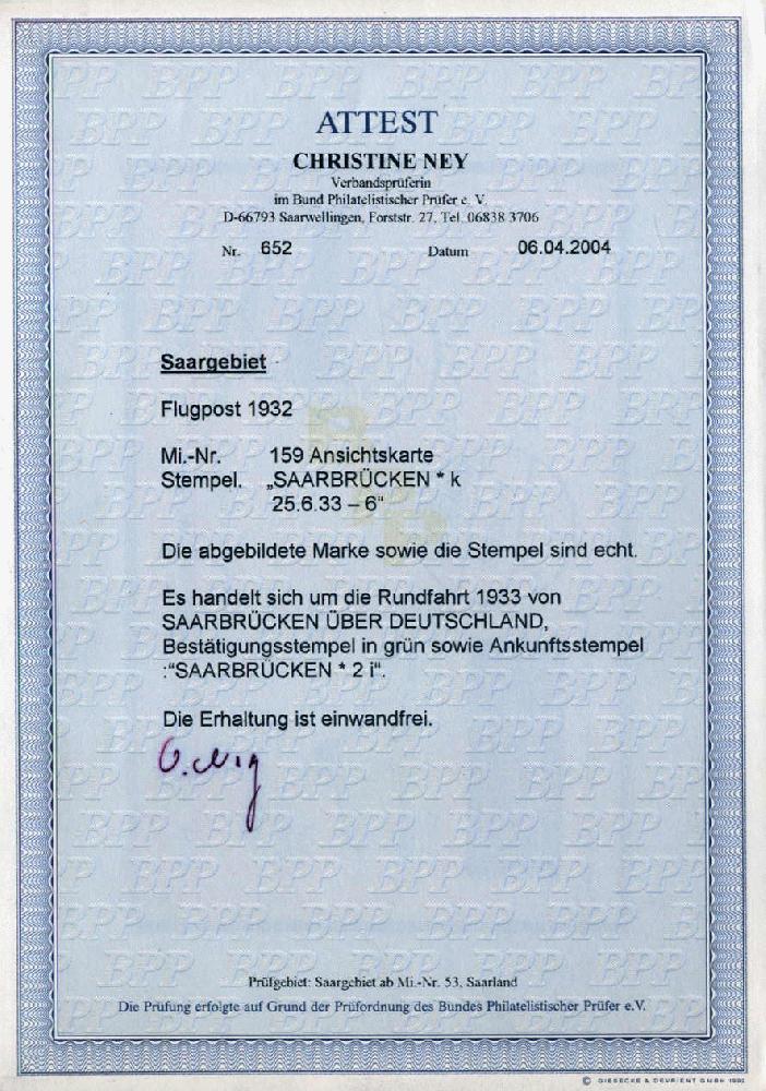 | Prüfgebiet: | Saargebiet (Mi-Nr. 1 - 205) |