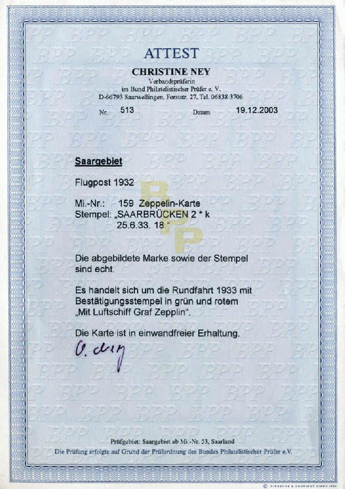 | Prüfer: | Ney, Christine (BPP (Bund Philatelistischer Prüfer)) |