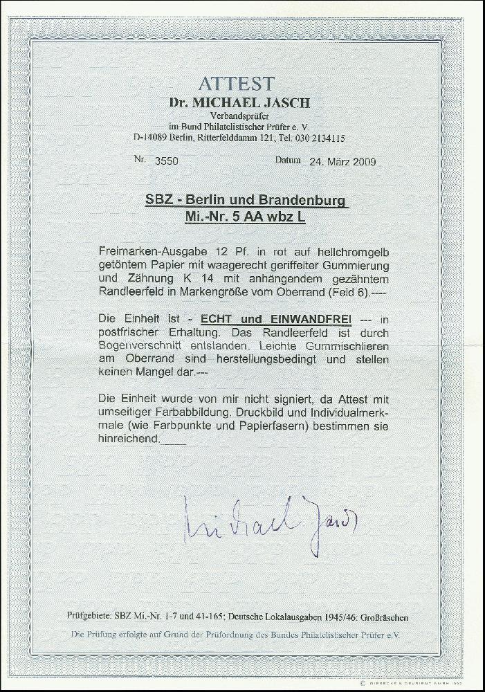 | Prüfer: | Jasch, Michael (BPP (Bund Philatelistischer Prüfer)) |