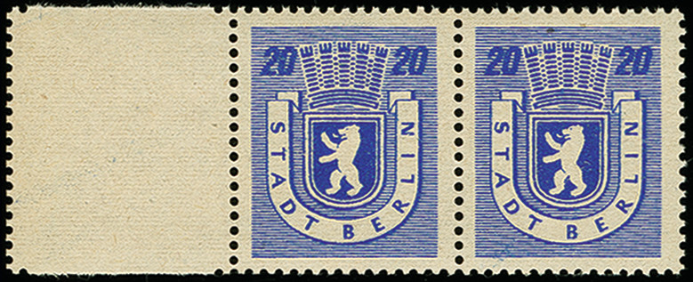| Zusatzinformationen und Suchstichworte: | 368. Auktion Heinrich Köhler 26.-30. März 2019 Los 2372 20 Pfg. dunkelblau im waagerechten Randpaar mit kpl. Randleerfeld links mit Bogenrandzähnung des Nachbarbogens, postfrisch, tadellos, selten, Fotoattest Ströh BPP (2003) (Mi. 320,-) Zuschlag 100,00 EUR |
