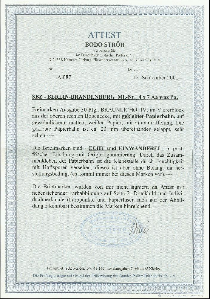 | Prüfer: | Ströh, Bodo (BPP (Bund Philatelistischer Prüfer)) |