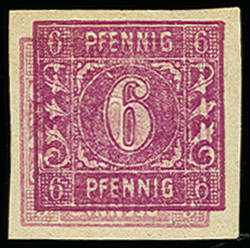 | Zusatzinformationen und Suchstichworte: | 368. Auktion Heinrich Köhler 26.-30. März 2019 Los 2378 6 Pfg. dunkelpurpur ungezähnt mit Doppeldruck (der Erstdruck kopfstehend), postfrisch, tadellos, sign. Kramp BPP mit Fotoattest (1998) (Mi. 750,-) Ausruf 150,00 EUR |
