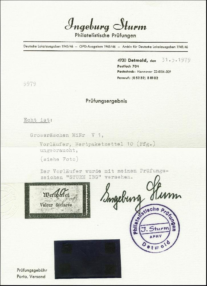 | Prüfgebiet: | Deutsche Lokalausgaben 1945 Großräschen |