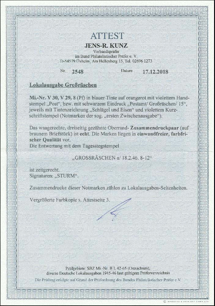 | Prüfgebiet: | Deutsche Lokalausgaben 1945 Großräschen |