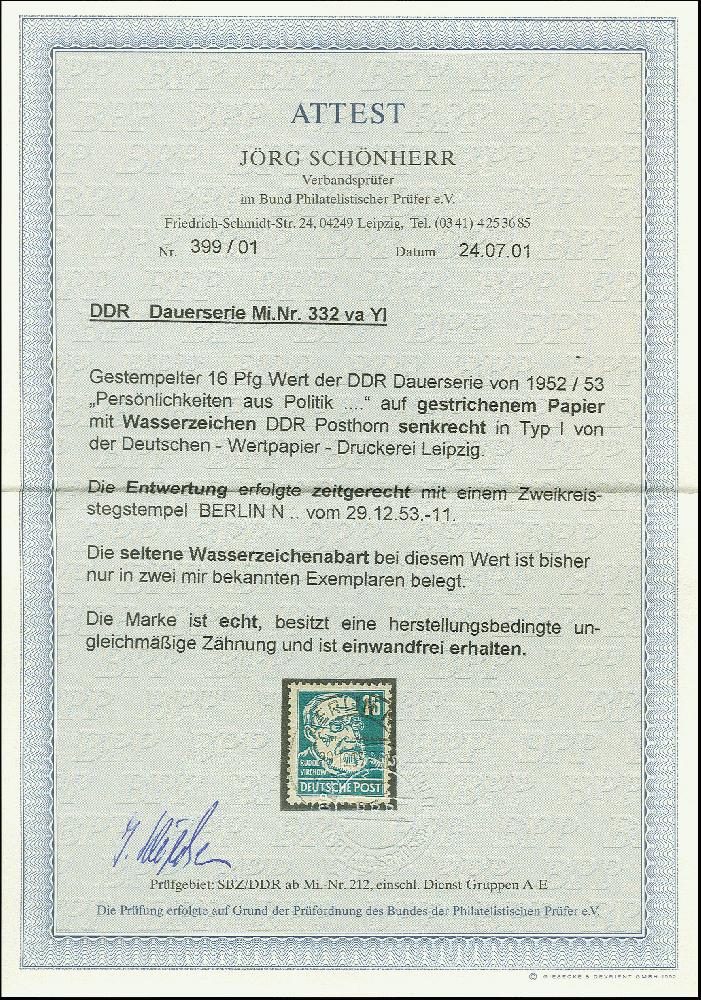 | Prüfer: | Schönherr, Jörg (BPP (Bund Philatelistischer Prüfer)) |