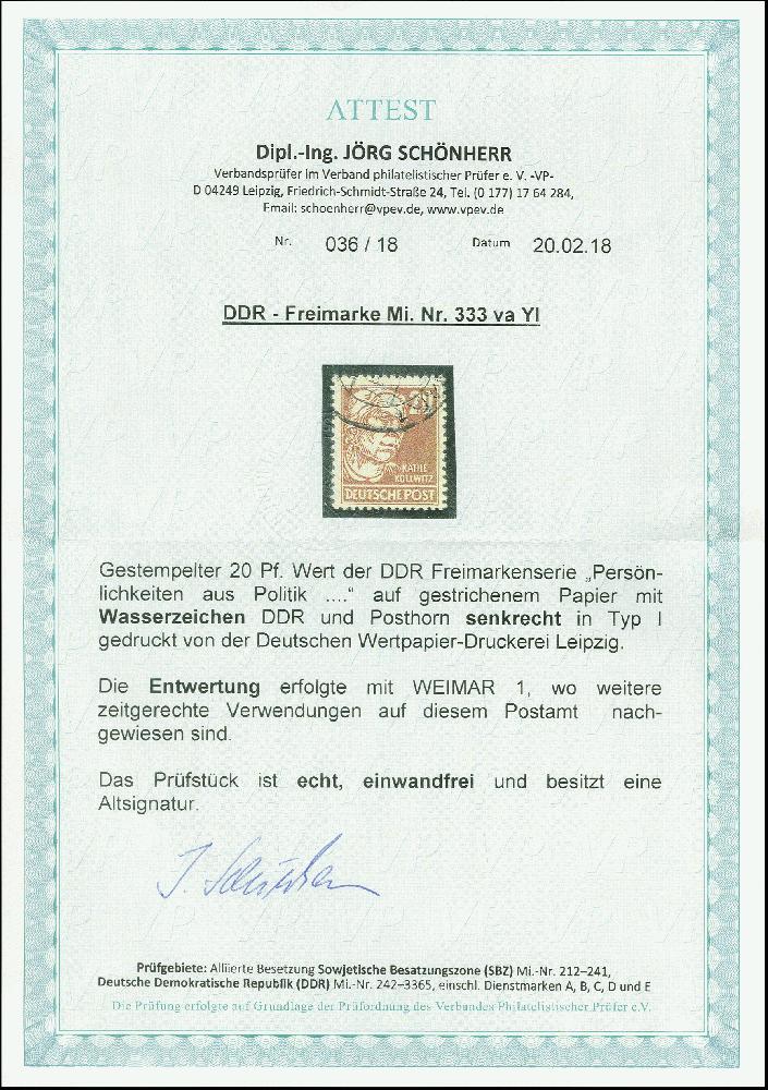 | Prüfer: | Schönherr, Jörg (VP (Verband Philatelistischer Prüfer)) |