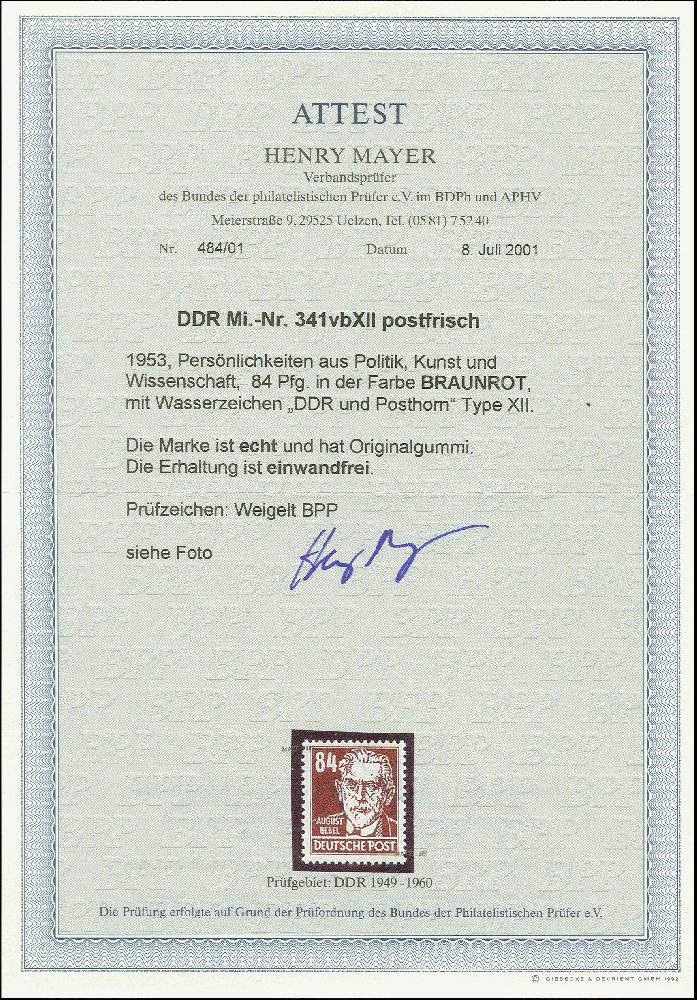 | Prüfer: | Mayer, Henry (BPP (Bund Philatelistischer Prüfer)) |