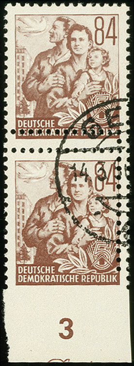 | Zusatzinformationen und Suchstichworte: | 368. Auktion Heinrich Köhler 26.-30. März 2019 Los 2577 84 Pfg. Nachdruck mit Wasserzeichen 2 XI und Abart "unten ungezähnt" im senkrechten Unterrandpaar, beide Marken mit zusätzlicher Teilzähnung im Markenbild, gebraucht mit aufgedrucktem Stempel "GERA 4", tadellos, Fotoattest Mayer BPP (2005) Zuschlag 80,00 EUR |