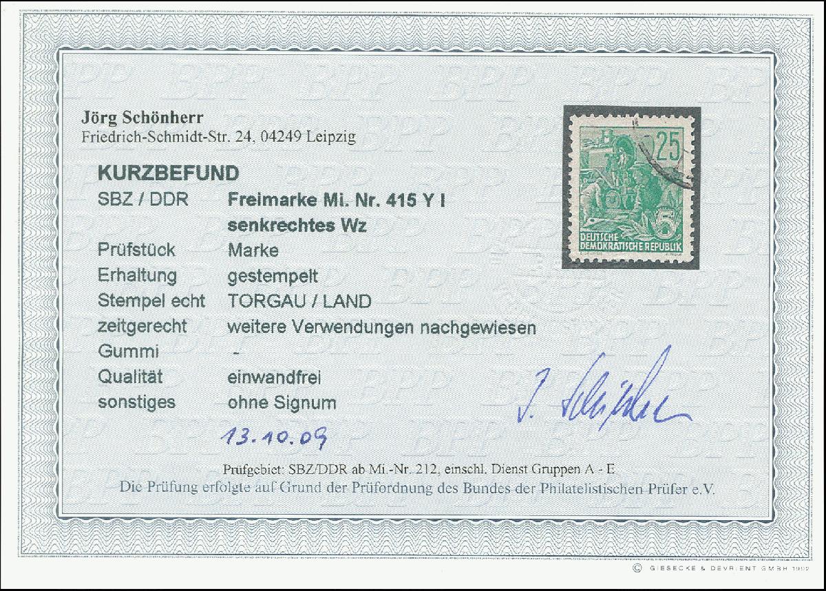 | Prüfer: | Schönherr, Jörg (BPP (Bund Philatelistischer Prüfer)) |