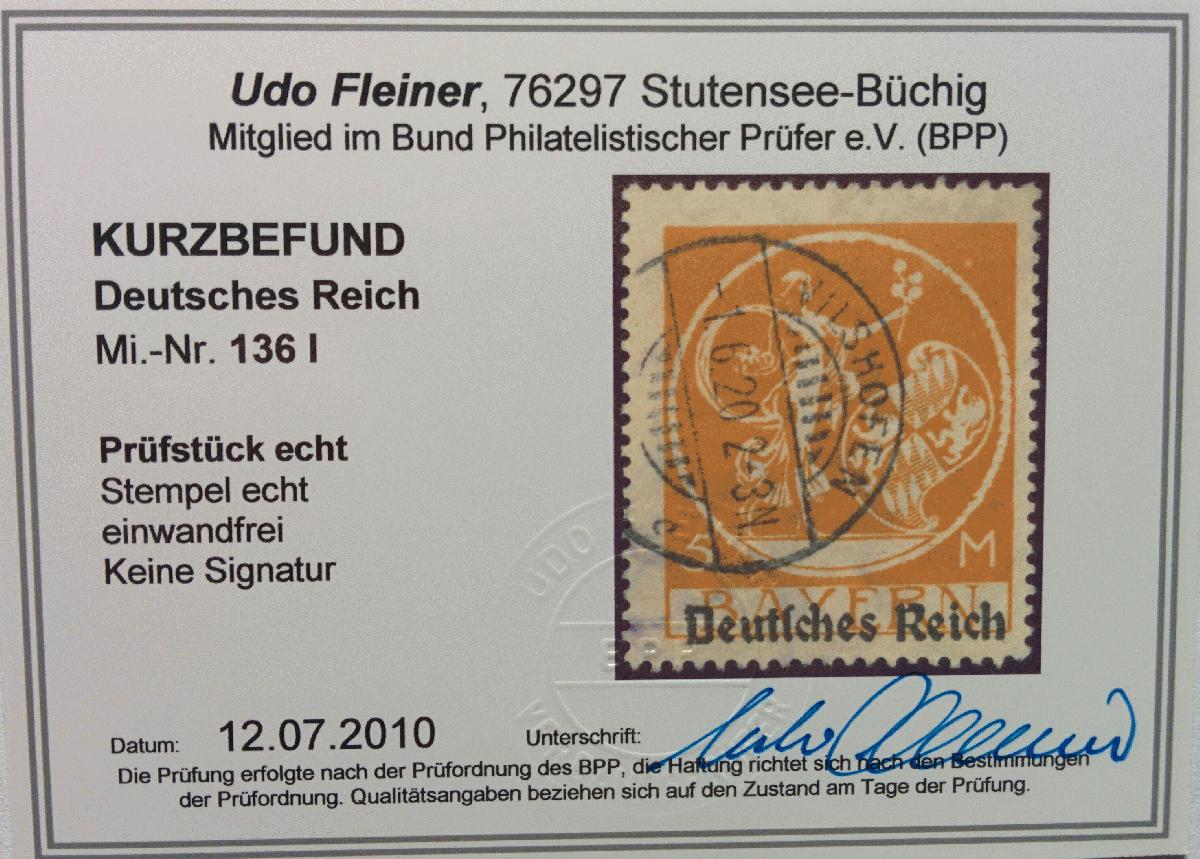 | Prüfgebiet: | Deutsches Reich 1919 - 1923 (Mi-Nr. 107 - 343) |