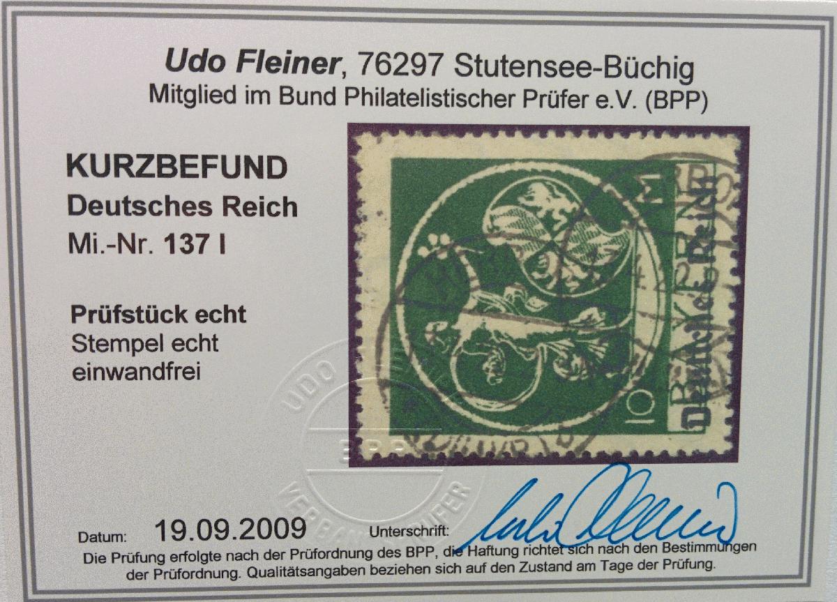 | Prüfer: | Fleiner, Udo (BPP (Bund Philatelistischer Prüfer)) |