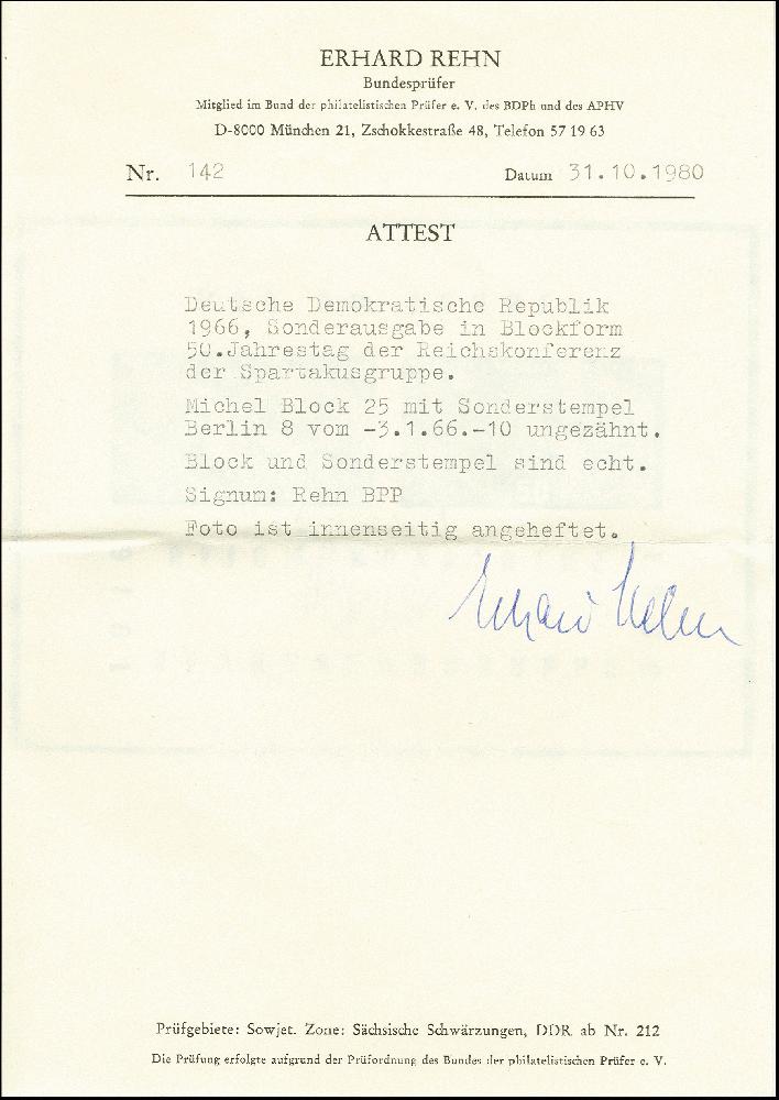 | Zusatzinformationen und Suchstichworte: | 368. Auktion Heinrich Köhler 26.-30. März 2019 Los 2609 50. Jahrestag der Reichskonferenz der Spartakusgrupp-Block ungezähnt mit ESST, tadellos, sehr selten, sign. Rehn BPP mit Fotoattest (1980) Zuschlag 2.200,00 EUR |