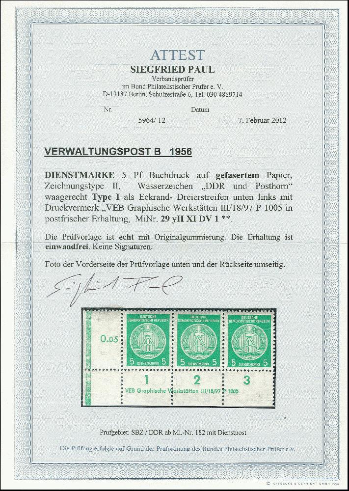 | Prüfgebiet: | DDR Dienstmarken - A Verwaltungspost B |