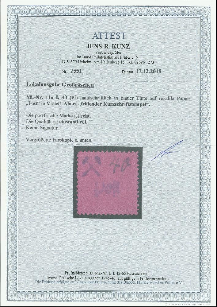 | Prüfgebiet: | Deutsche Lokalausgaben 1945 Großräschen |