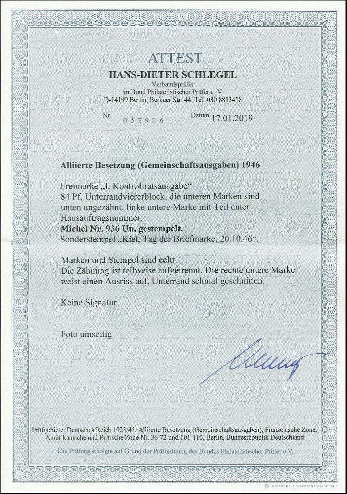 | Prüfer: | Schlegel, Hans-Dieter (BPP (Bund Philatelistischer Prüfer)) |