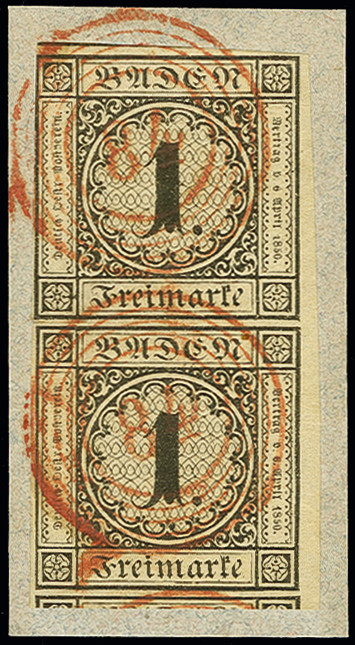 | Zusatzinformationen und Suchstichworte: | 368. Auktion Heinrich Köhler 26.-30. März 2019 Los 3237 1 Kr. auf sämisch im senkrechten Paar, die obere Marke links oben berührt, sonst voll- bis überrandig, unten mit Teil der Nachbarmarke und rechts mit 1-2 mm Bogenrand, sauber entwertet durch rote Nr. "84" LÖRRACH auf Briefstück; zwischen den Marken kleiner Vortrennschnitt, farbfrische und ursprüngliche tadellose Erhaltung, ein außerordentlich schönes und seltenes Paar, Fotoattest Stegmüller BPP (2019) Zuschlag 900,00 EUR |