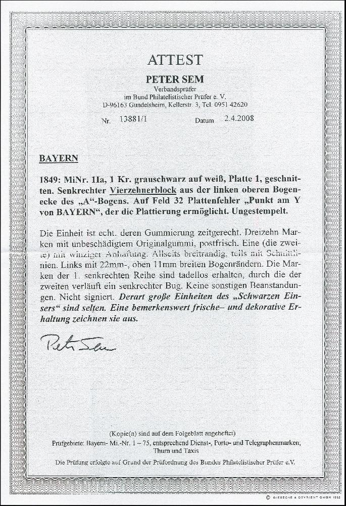 | Prüfer: | Sem, Peter (BPP (Bund Philatelistischer Prüfer)) |