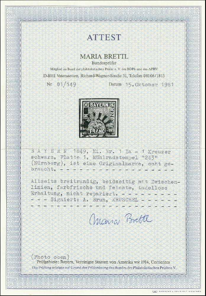 | Prüfer: | Brettl, Maria (BPP (Bund Philatelistischer Prüfer)) |