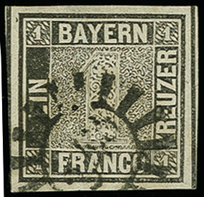 | Zusatzinformationen und Suchstichworte: | 368. Auktion Heinrich Köhler 26.-30. März 2019 Los 3285 1 Kr. schwarz, allseits breitrandig mit Zwischenlinien links und rechts, leicht entwertet durch gMR "243" NÜRNBERG, tadellos, sign. Brun und Kruschel sowie Fotoattest Brettl BPP (1981) Zuschlag 1.300,00 EUR |