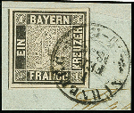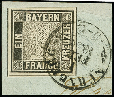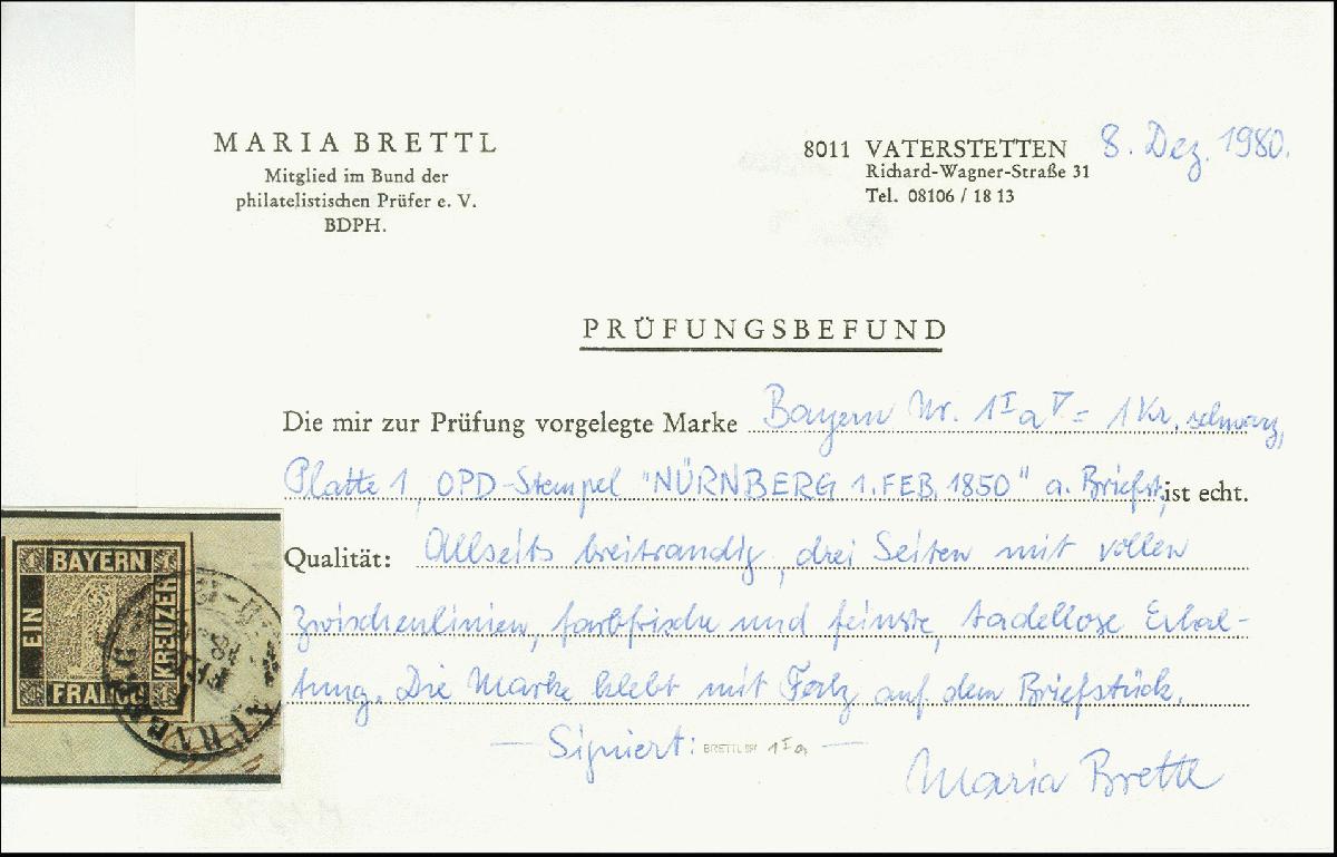 | Zusatzinformationen und Suchstichworte: | 368. Auktion Heinrich Köhler 26.-30. März 2019 Los 3286 1 Kr. grauschwarz, allseits breitrandig und farbfrisch mit DKr. "NÜRNBERG 1 FEB. 1850" auf kleinem Briefstück; die Marke war zur Prüfung gelöst und ist mit Falz befestigt; ein dekoratives Stück in tadelloser Erhaltung, sign. Brettl BPP mit Befund Zuschlag 1.200,00 EUR |