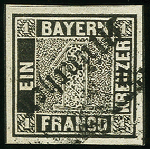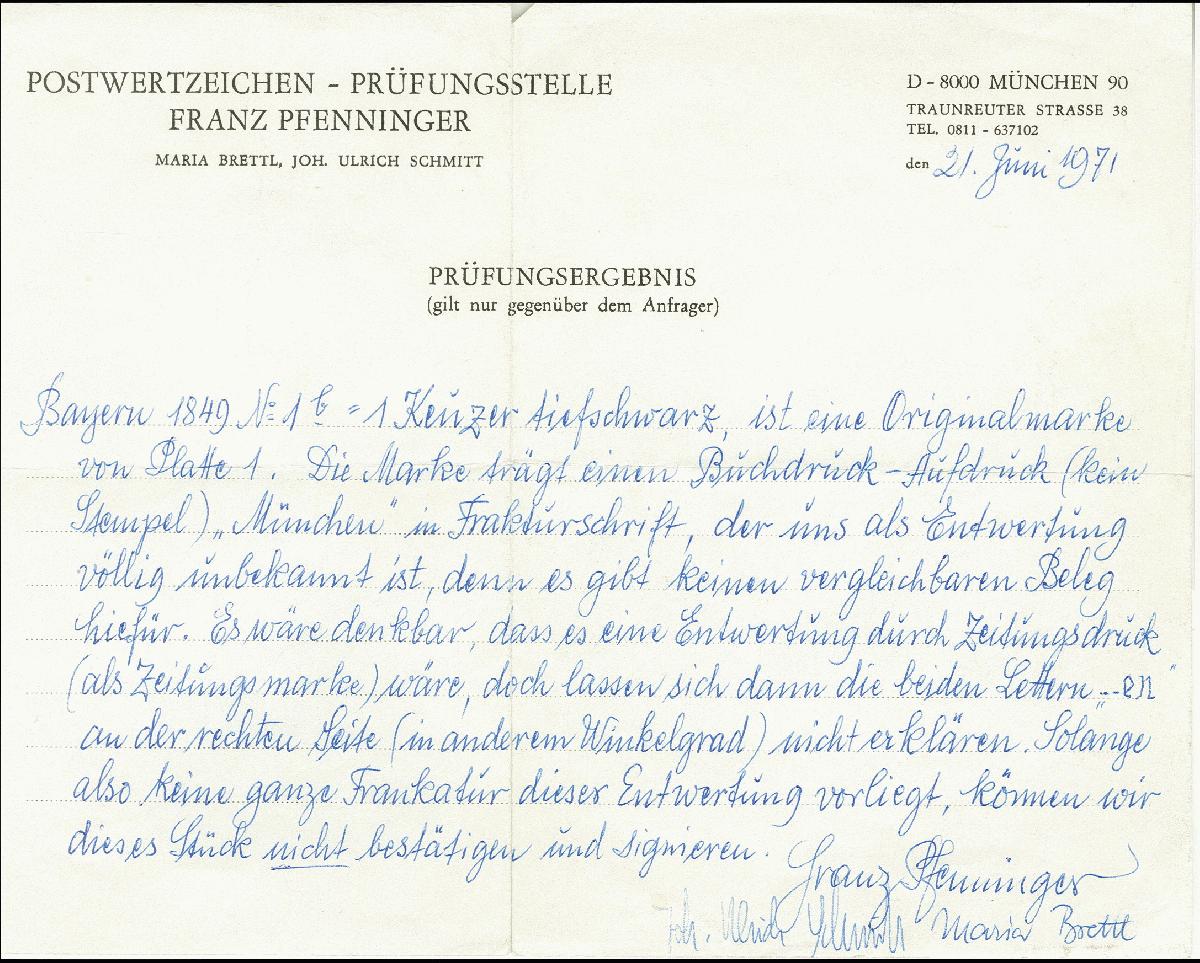 | Zusatzinformationen und Suchstichworte: | 368. Auktion Heinrich Köhler 26.-30. März 2019 Los 3293 1 Kr. tiefschwarz mit Plattenfehler "Rechte Randlinie rechts unten beschädigt" (Feld C28), allseits breitrandig und farbfrisch, mit Buchdruck-Aufdruck "München" diagonal kopfstehend sowie "en" kopfstehend waagerecht am rechten Rand. Der Status dieser "Entwertung" ist ungeklärt; ein interessantes Stück, Stellungnahmen Pfenninger/Brettl/Schmitt (1971) und Stegmüller (2014) Zuschlag 1.500,00 EUR |