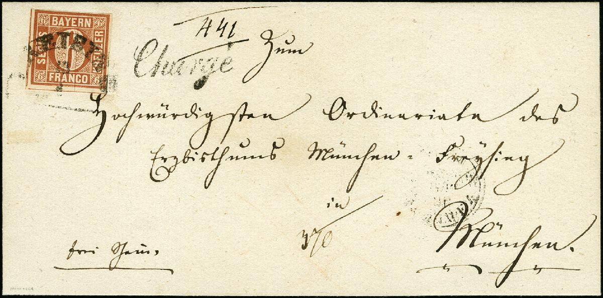 | Zusatzinformationen und Suchstichworte: | 368. Auktion Heinrich Köhler 26.-30. März 2019 Los 3303 6 Kr. braunorange, oben voll-, sonst breitrandig mit alleiniger Entwertung durch Halbkreisstempel "FREISING 13/4", Chargé-Briefhülle nach München, Pracht, sign. Pfenninger und Brettl BPP mit Fotoattest (1996) Zuschlag 240,00 EUR |