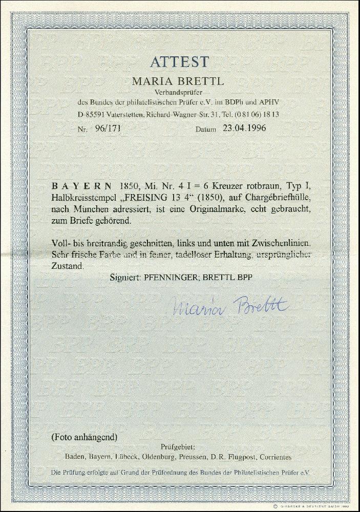 | Prüfer: | Brettl, Maria (BPP (Bund Philatelistischer Prüfer)) |
