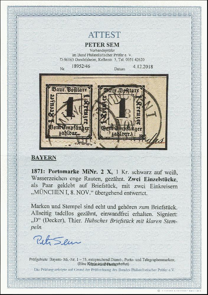 | Prüfgebiet: | Altdeutschland Bayern Portomarken |