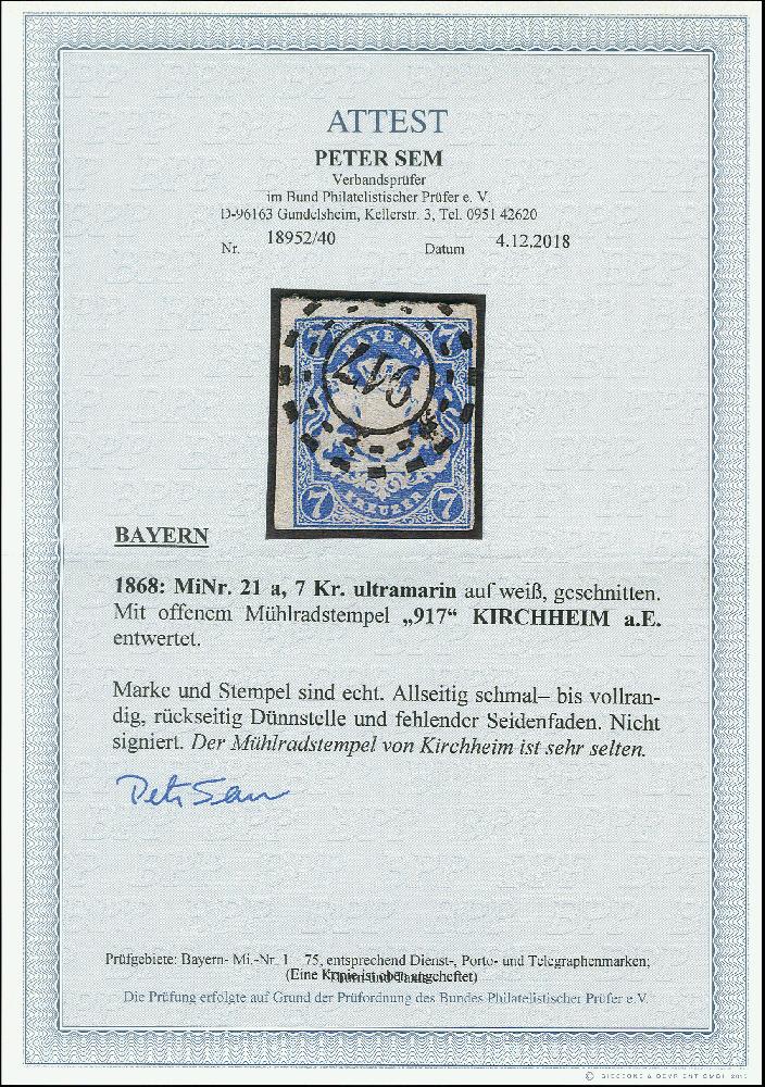 | Prüfer: | Sem, Peter (BPP (Bund Philatelistischer Prüfer)) |