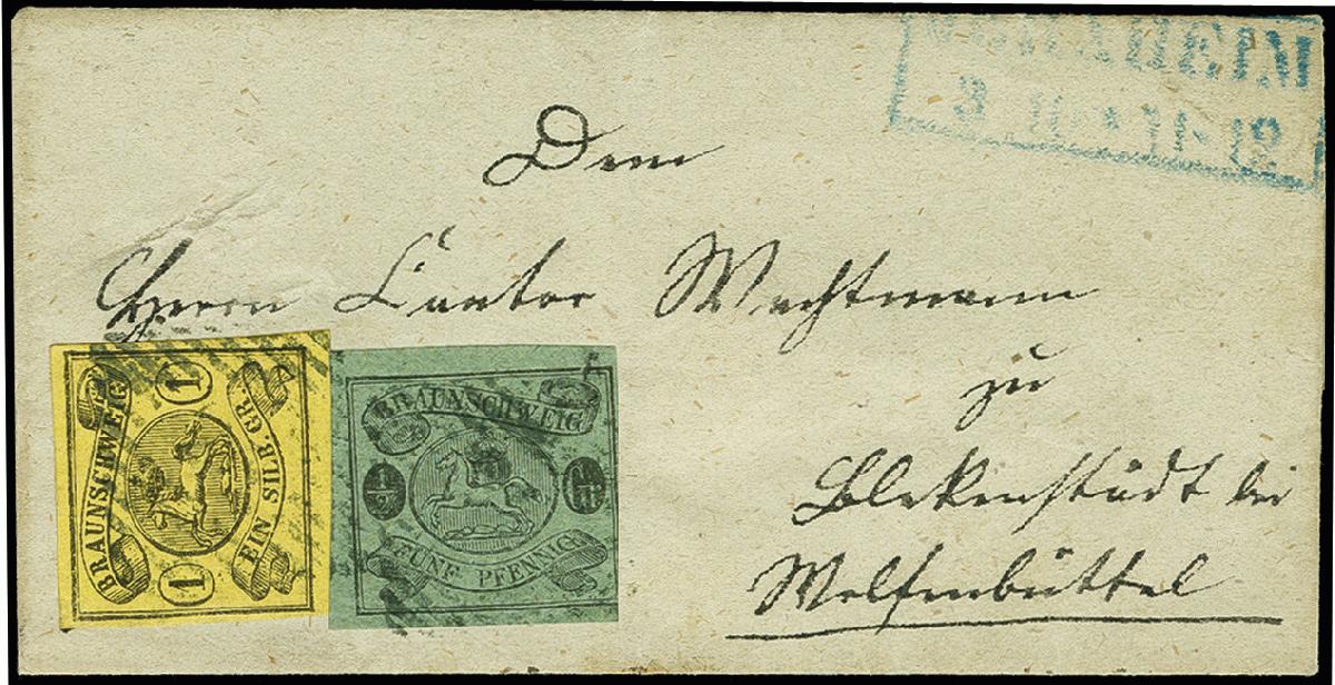 | Zusatzinformationen und Suchstichworte: | 368. Auktion Heinrich Köhler 26.-30. März 2019 Los 3380 ½ Gr. auf lebhaftgraugrün, dünnes Papier, rechts unten etwas berührt, sonst voll bis sehr breitrandig zusammen mit voll- bis breitrandiger 1 Sgr. auf gelb mit Nr. "25" und nebengesetztem Ra2 "JERXHEIM 3 10" auf kleiner Briefhülle nach Bleckenstedt im Landzustellbezirk von Wolfenbüttel, bis auf den Schnittfehler einwandfrei, eine attraktive und recht seltene Frankatur, Fotoattest Dr. Wilderbeek BPP (2018) Zuschlag 260,00 EUR |